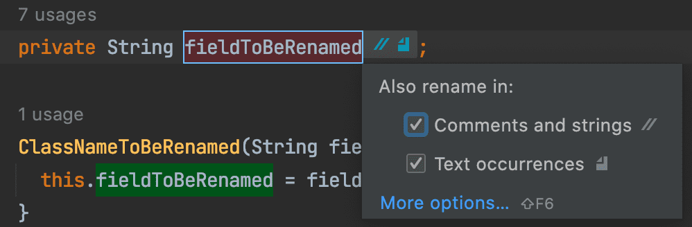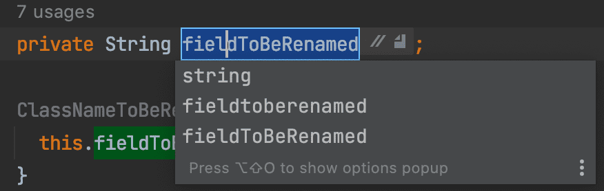 fieldToBeRenamedde la classeClassNameToBeRenamedpourfield. - Renommez la classe